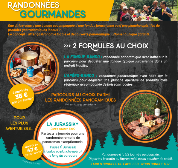 - Randonnées gourmandes : que diriez-vous de déguster une fondue nomade ou une planche apéritive