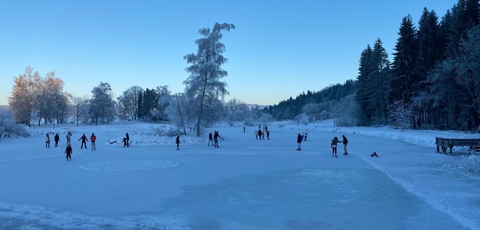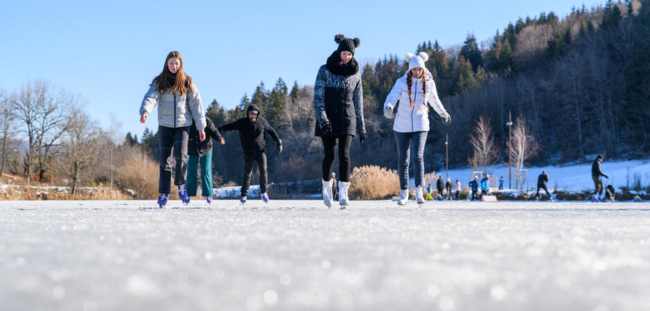 Ce plan d'eau d'une surface de 1,4 hectares se transforme en grande patinoire naturelle dès les premières gelées. Sa faible profondeur est un gage de sécurité tout comme la surveillance quotidienne de l'épaisseur de glace.